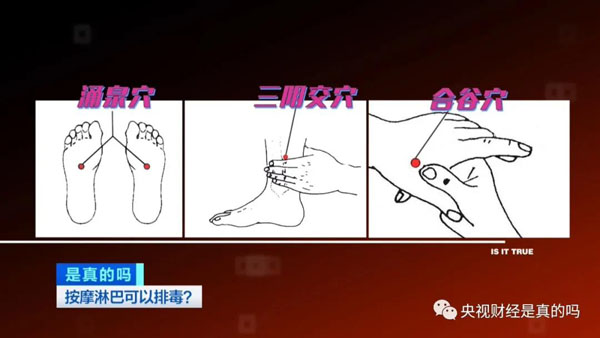 中國中醫(yī)科學(xué)院針灸醫(yī)院腦病科副主任醫(yī)師韓穎:“在人體中有一些保健的穴位,通過按摩保健的穴位來調(diào)整相應(yīng)的臟腑功能,就能達(dá)到排毒的效果。例如涌泉穴、合谷穴、三陰交穴?!?/p>