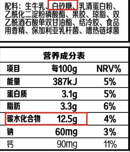 如果碳水化合物一欄>5%了,那就用碳水化合物的量減去5%,得到了就是這款酸奶添加糖的量了。比如下圖這款:
