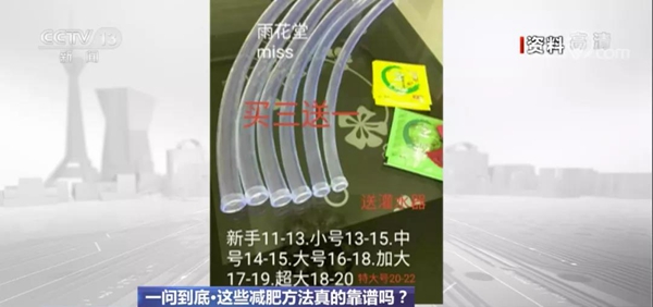 在部分電商平臺上,有被稱作“兔兔管”或“仙女管”的催吐設(shè)備售賣,每根塑料管直徑從11毫米到22毫米不等,賣家表示使用時需將催吐管插入胃里,使食物沿著催吐管吐出,一個月能減掉十幾斤。