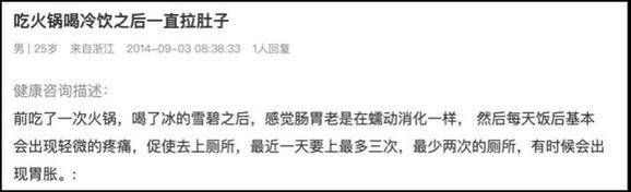 類(lèi)似在網(wǎng)絡(luò)問(wèn)診平臺(tái)上,一位25歲的年輕人就寫(xiě)道,自己之前吃了火鍋,也喝了冰飲料,之后總是輕微腹痛,最近一天要去三次廁所。