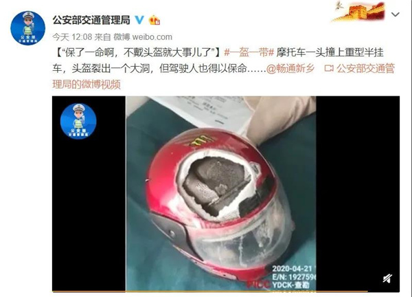保命的頭盔 | 公安局交通管理局官方微博截圖