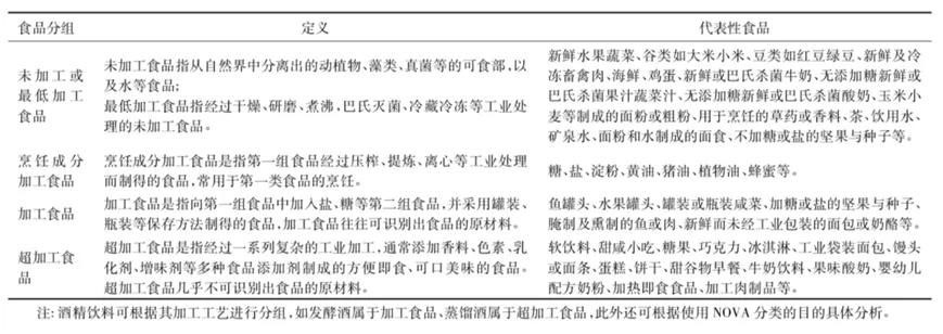 根據(jù)國(guó)際食品分類標(biāo)準(zhǔn)“NOVA”,食品按加工程度可分為四大類: