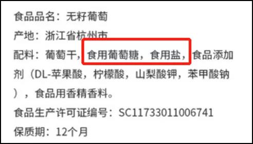 需要注意不要買蜜餞類的葡萄干,比如下圖這款就是蜜餞類的。配料中不僅有葡萄干,還加了食用葡萄糖和鹽,這使得葡萄干的熱量、糖、鈉含量都會額外增加。如果買了這種葡萄干,常吃的話真的超胖人!