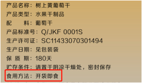 ② 看好標(biāo)簽再買,選購葡萄干的時候要挑選配料表中只有葡萄干的,有的包裝上也會寫著開袋即食,這樣的吃起來更方面,不洗也能放心吃。