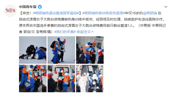 但也難免傳來一些突發(fā)消息,年僅18歲的楊碩瑞在自由式滑雪女子大跳臺資格賽前熱身訓(xùn)練中受傷,經(jīng)現(xiàn)場及時處理,她被救護(hù)車送往醫(yī)院診療。
