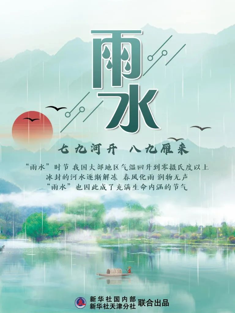 “雨水”時(shí)節(jié),我國(guó)大部地區(qū)氣溫回升到零攝氏度以上,冰封的河水逐漸解凍,“七九河開(kāi),八九雁來(lái)”,春風(fēng)化雨,潤(rùn)物無(wú)聲,“雨水”也因此成了充滿生命內(nèi)涵的節(jié)氣。