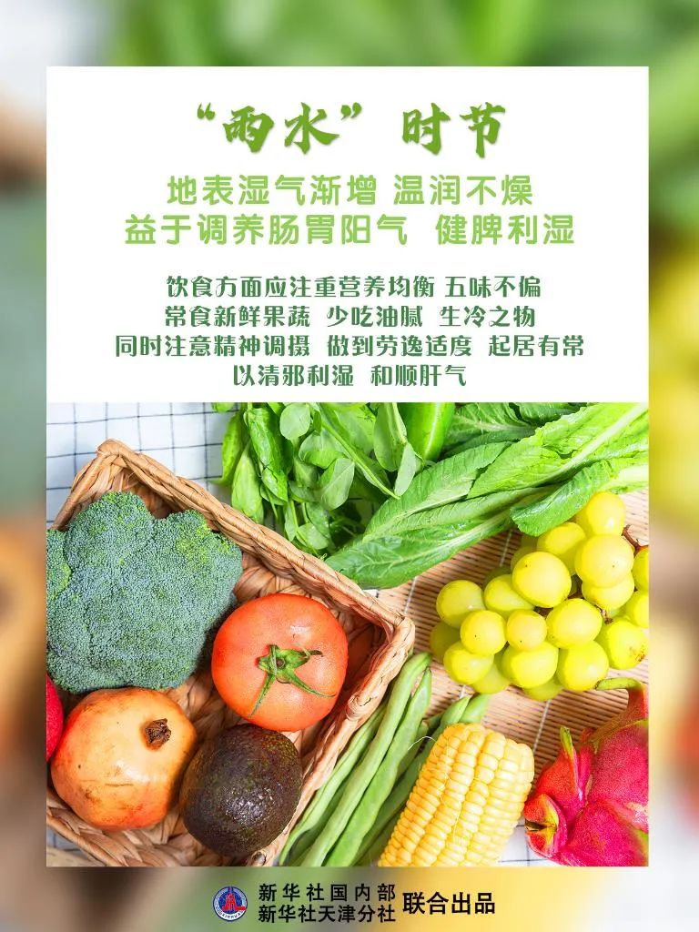“雨水”時(shí)節(jié),地表濕氣漸增,溫潤(rùn)不燥,益于調(diào)養(yǎng)腸胃陽(yáng)氣,健脾利濕。飲食方面應(yīng)注重營(yíng)養(yǎng)均衡,五味不偏,常食新鮮果蔬,少吃油膩、生冷之物,同時(shí)注意精神調(diào)攝,做到勞逸適度,起居有常,以清邪利濕,和順肝氣。