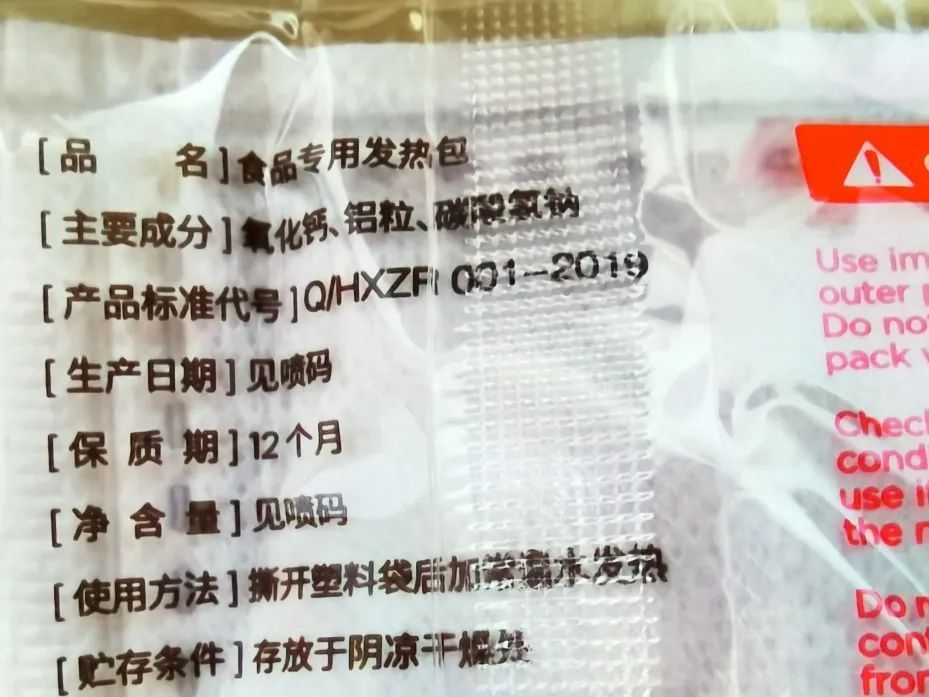 加熱過程中的加熱包溫度可達150℃以上,所產(chǎn)生的蒸汽溫度也可高達200℃,摸它則燙你沒商量!若有明顯的白色泡沫及石灰水樣物質(zhì)溢到食物中,最好棄之不食。因為可能有未反應(yīng)完成的大量堿性物質(zhì),會對消化道造成刺激或灼傷。若只是少量加熱水溢到食物中,可能會影響食物口味,但危害不大,可正常食用。
