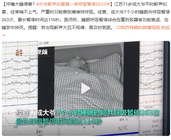 實(shí)際上,打呼?!偎煤?!最近上熱搜的一位大爺,就是這種情況。