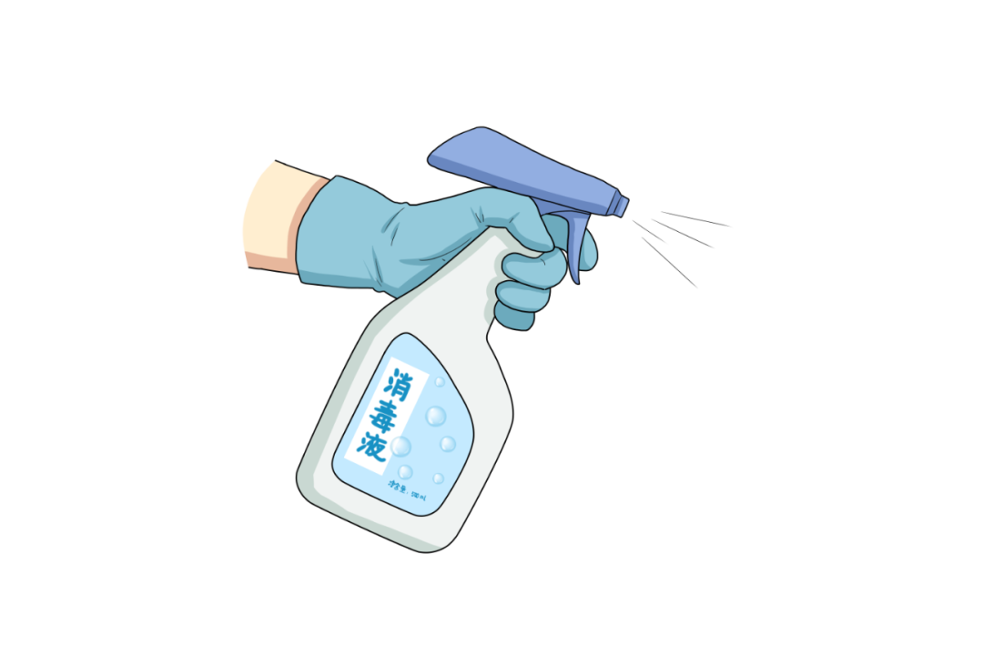 √ 使用消毒劑的過程中,要注意避開口鼻,最好佩戴口罩和橡膠手套,防止液體飛濺。