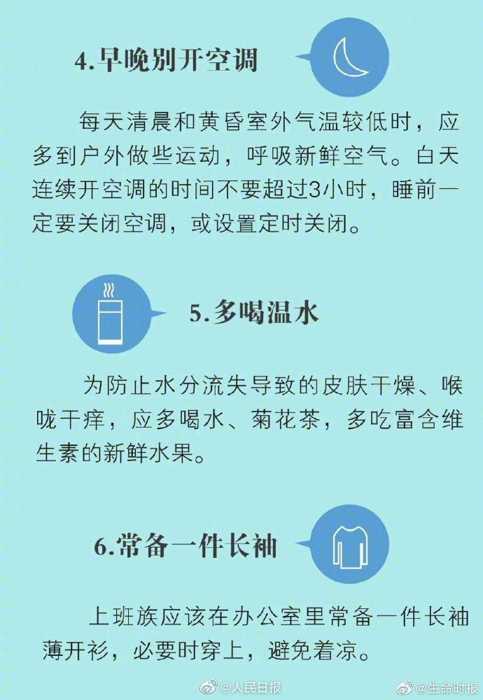 6月22日6時(shí),中央氣象臺(tái)繼續(xù)發(fā)布高溫橙色預(yù)警。夏天到來(lái),高溫天又來(lái)了,你家的空調(diào)打開(kāi)了嗎?部分人吹空調(diào)后,會(huì)出現(xiàn)鼻塞、頭暈、乏力等癥狀,嚴(yán)重者還會(huì)感冒發(fā)燒、肩頸疼痛…如何健康吹空調(diào)?