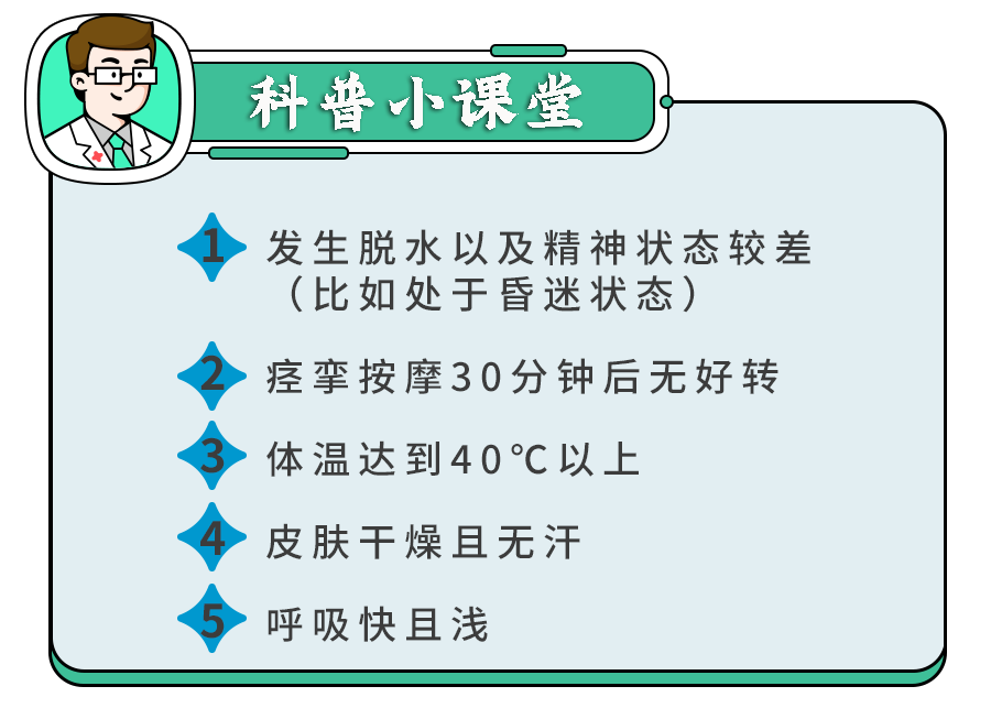 如果經(jīng)過上述處理后,孩子仍然有這5種表現(xiàn),要立即送往醫(yī)院治療: