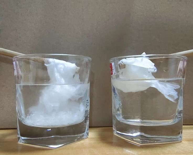 攪拌實(shí)驗(yàn)結(jié)果:左側(cè)卷紙,右側(cè)抽紙 圖片來(lái)源:作者拍攝