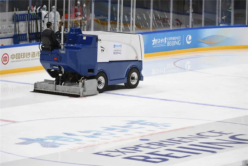△2021年11月13日,工作人員在“相約北京”冰球國內(nèi)測試活動決賽間隙修整冰面。新華社記者張晨霖攝