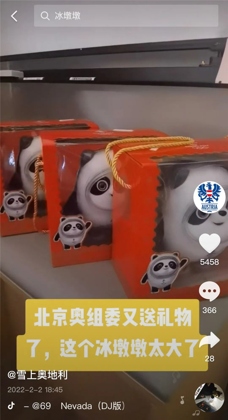 而在運動員報到的時候,北京冬奧組為還特意為每人送上了一個冰墩墩玩偶。在拿到玩偶的時候,奧地利奧組委還特意進行了直播,開心地直呼:“之前剛剛拿到新春大禮包,北京奧組委又送禮物了,這個冰墩墩太大了!”網友笑稱:“天天拆禮物可真爽?!?/p>