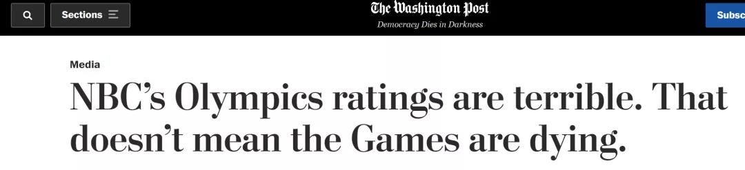 《華盛頓郵報》:NBC冬奧收視率慘淡,但并不意味著比賽在消亡