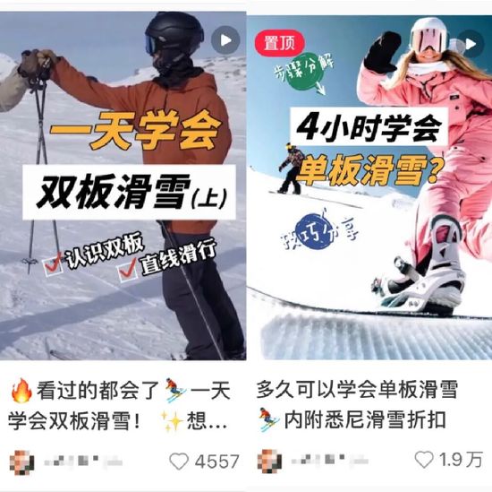 隨著滑雪運動升溫,網(wǎng)上也出現(xiàn)了一些“4小時學(xué)會單板滑雪”“雙板滑雪,一天學(xué)會”“每天1分鐘,看視頻學(xué)滑雪”等“教程”。