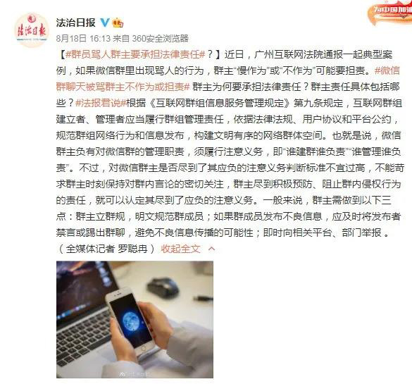 日前,廣州互聯(lián)網(wǎng)法院通報(bào)一起典型案例,如果微信群里出現(xiàn)罵人的行為,群主“慢作為”或“不作為”可能要擔(dān)責(zé)。