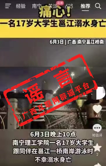 近日,一則“6月3日晚10點,南寧理工學院一名 17歲大學生跟同伴在邕江一橋南岸游泳時不幸溺水身亡”的消息在社交媒體上流傳,引發(fā)網(wǎng)友廣泛關(guān)注。