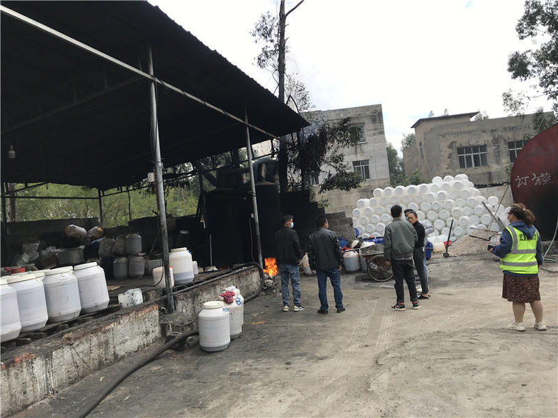 經(jīng)現(xiàn)場(chǎng)核查,確認(rèn)視頻中提到的油脂煉制窩點(diǎn)位于武宣鎮(zhèn)對(duì)河村舊村塘山腳下的一個(gè)小院子內(nèi),在門口處就能聞到一股濃濃的惡臭味,院子內(nèi)露天放置的七八個(gè)塑料桶內(nèi)盛滿收集的廢棄餐廚物,并架設(shè)有煉制油脂的鐵鍋,院子外有傾倒廢棄物的痕跡。取證后,涉事人員被帶回當(dāng)?shù)嘏沙鏊婪ㄌ幹谩?/p>