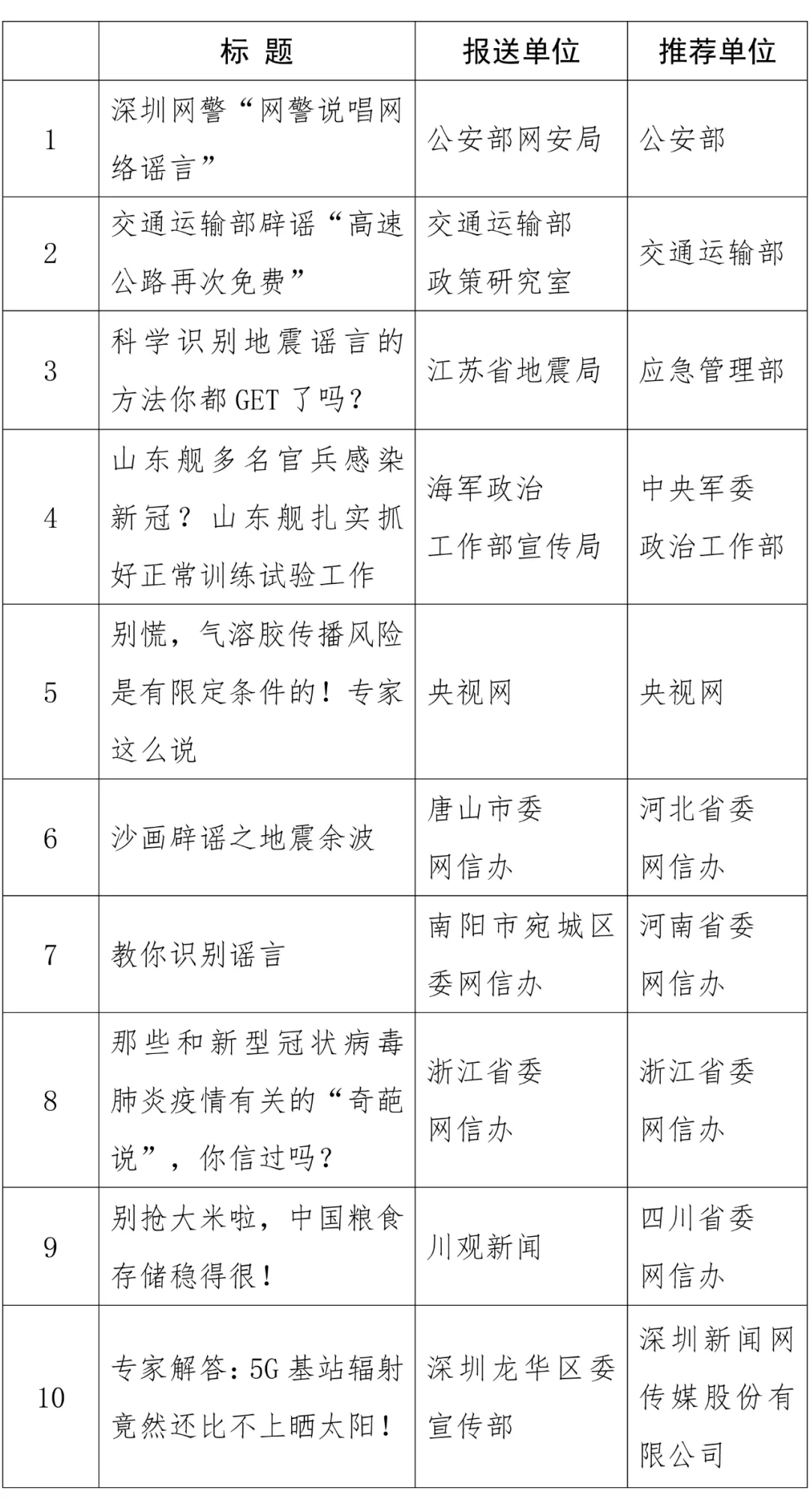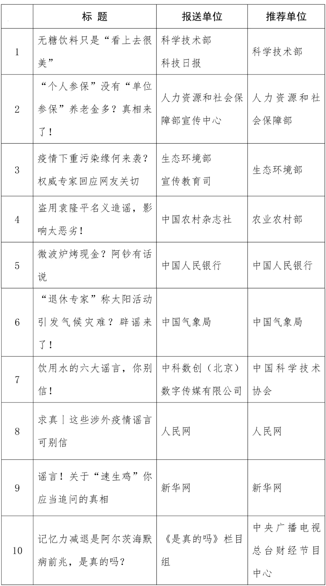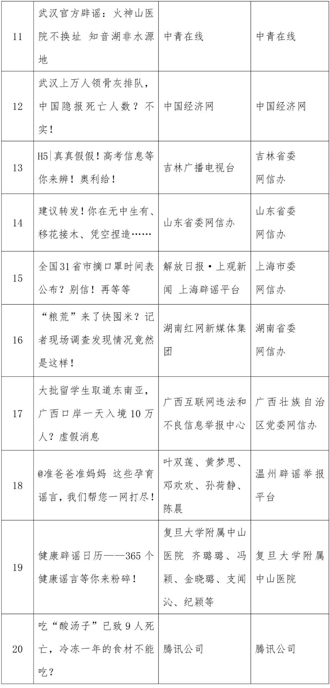 “2020年度中國互聯(lián)網(wǎng)辟謠優(yōu)秀作品”名單