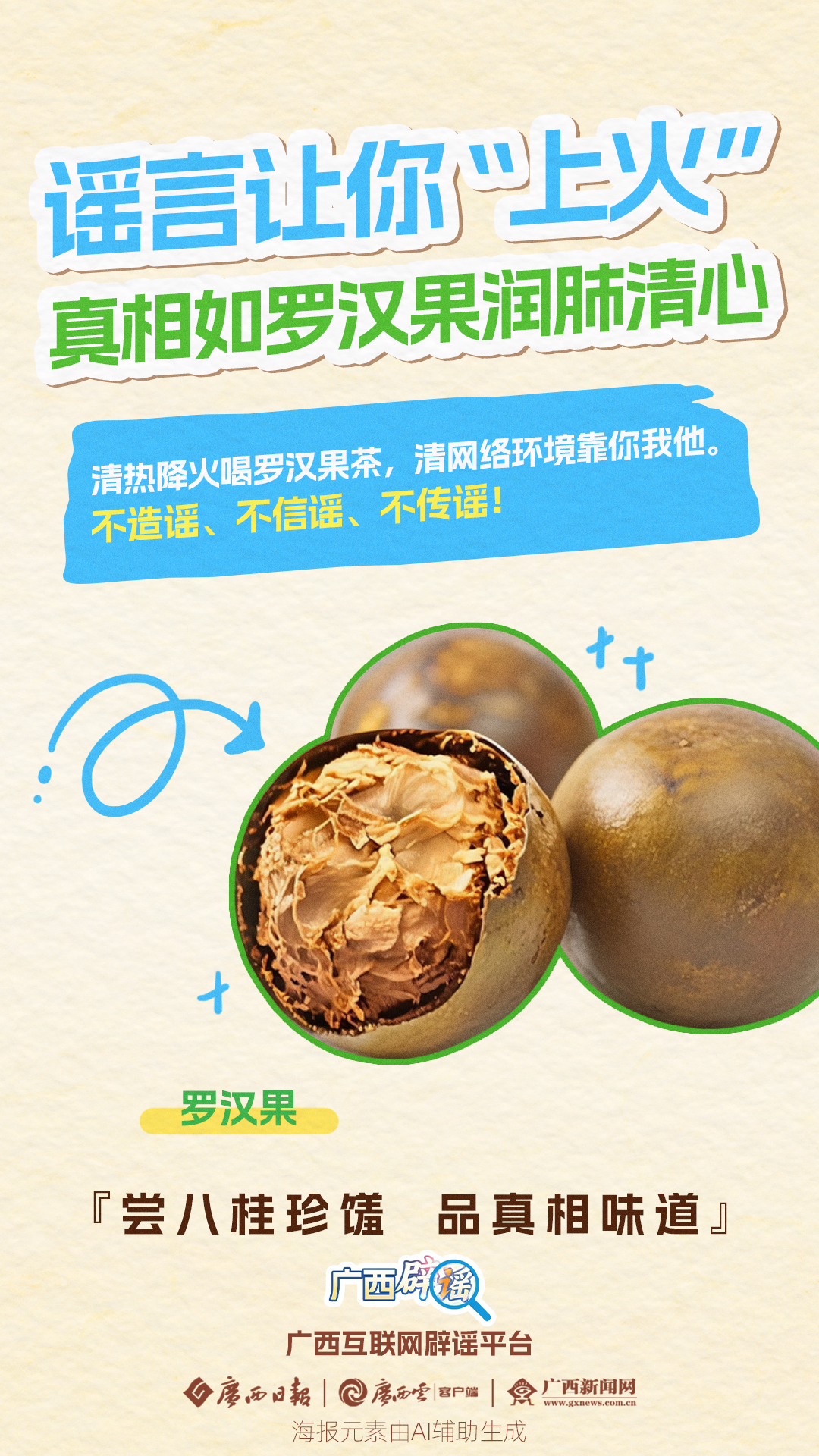 廣西互聯(lián)網(wǎng)辟謠平臺(tái)聯(lián)合廣西云推出“嘗八桂珍饈 品真相味道”辟謠海報(bào),