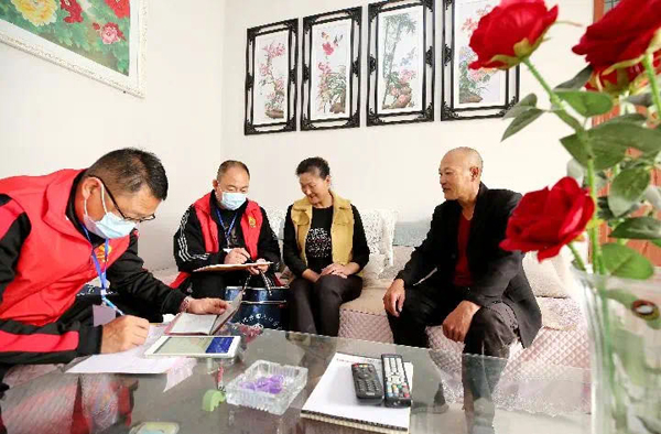11月1日,山東省棗莊市市中區(qū)齊村鎮(zhèn)齊東村人口普查員在居民家中進行人口普查登記工作。新華社發(fā)(孫中喆 攝)