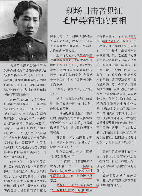 成普口述,成普女兒成曦整理的《現(xiàn)場(chǎng)目擊者見(jiàn)證毛岸英犧牲真相》