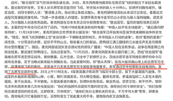 楊某除了在書(shū)中編造出子虛烏有的“毛岸英在作戰(zhàn)室內(nèi)蛋炒飯”的謠言之外,該書(shū)的其他關(guān)鍵點(diǎn)更是破綻百出,經(jīng)不起一點(diǎn)考證。