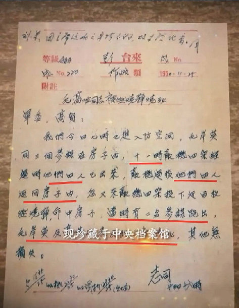 毛岸英犧牲當(dāng)天,彭德懷專門(mén)向中央軍委作了匯報(bào)。這封短短的電報(bào),彭德懷足足寫(xiě)了一個(gè)多小時(shí)。近日,這份電報(bào)終于被大家廣泛地注意到。