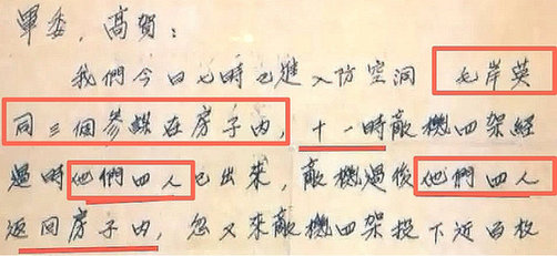 彭德懷也在絕密電報(bào)中反復(fù)強(qiáng)調(diào)“毛岸英與其他三名參謀”“他們四人”,明確說(shuō)明在場(chǎng)四人。