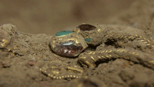 神秘的印章成為重要發(fā)現(xiàn)??脊抨?duì)員在主墓室棺床附近發(fā)現(xiàn)了一枚方形的印章,邊長(zhǎng)約1.8厘米,印章上刻畫著駱駝的形象和其他一些痕跡。這枚印章究竟記錄了怎樣一段歷史,還需要考古專家進(jìn)一步清理和釋讀。