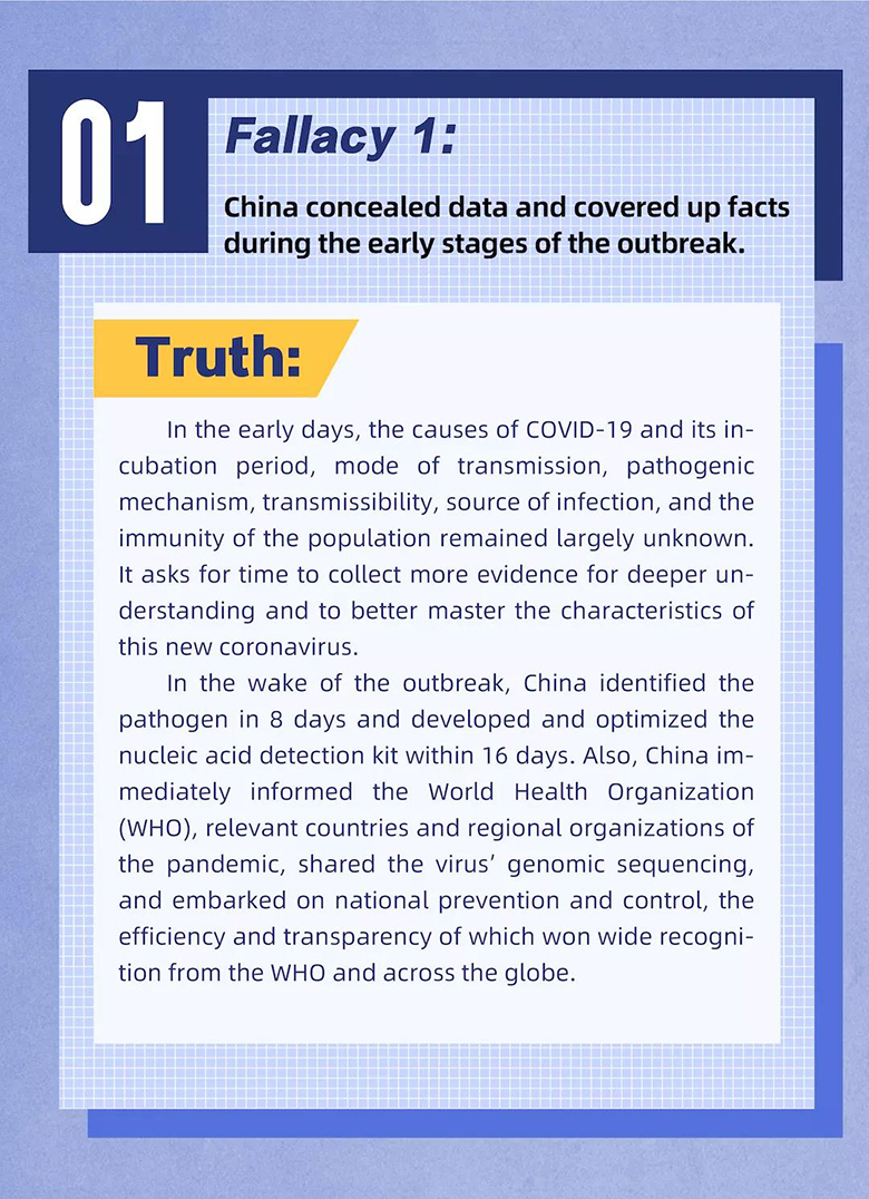 新冠肺炎疫情出現(xiàn)以來(lái),美國(guó)一些政客罔顧客觀事實(shí),一再攻擊、抹黑中國(guó)抗疫,試圖以此“甩鍋”。美國(guó)國(guó)會(huì)眾議院外交事務(wù)委員會(huì)共和黨人邁克爾·麥考爾近期公布所謂報(bào)告,即延續(xù)這一“風(fēng)格”。看圖對(duì)照部分謊言謬論,還原真相。