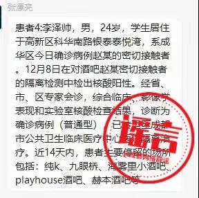 12月8日,不少網(wǎng)友在朋友圈、微博等社交平臺(tái)瘋傳著這樣一則消息,稱高新區(qū)一男子李某為確診病例趙某的密切接觸者,檢測(cè)結(jié)果呈陽(yáng)性。