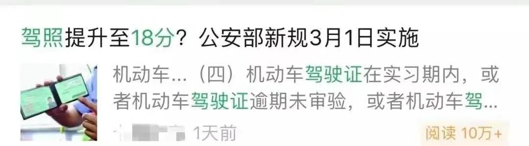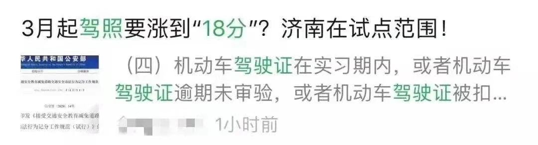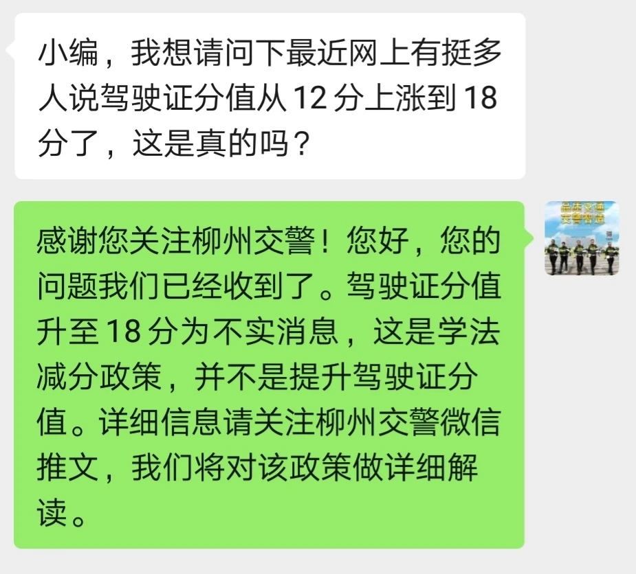 最近,交警部門收到市民留言說,在網(wǎng)絡(luò)上有消息稱駕駛證分值要提升至18分了,不知道是真是假。