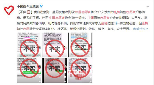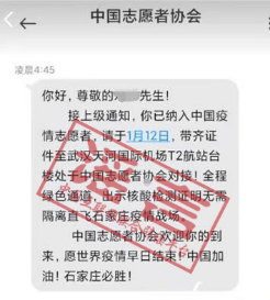 注意!這條以“中國(guó)志愿者協(xié)會(huì)”名義發(fā)布的疫情防控志愿者招募短信,是假的。
