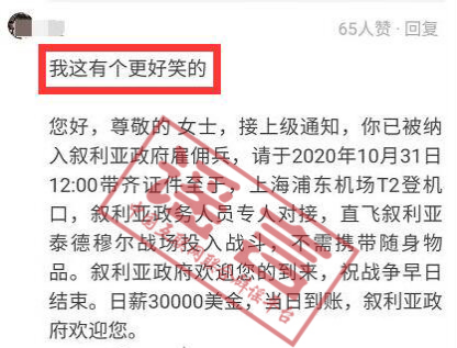 通過(guò)進(jìn)一步檢索發(fā)現(xiàn),類(lèi)似的“招募短信”還有一則“敘利亞征兵帖”,因內(nèi)容過(guò)于奇葩,一直是社交平臺(tái)公認(rèn)的網(wǎng)絡(luò)段子。