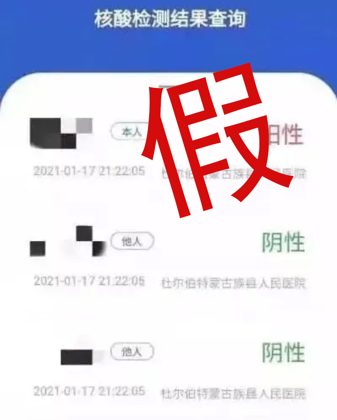1月17日,黑龍江大慶杜爾伯特蒙古族自治縣劉某在網(wǎng)上發(fā)布自己P圖后改為陽性的核酸檢測報告,造成大量網(wǎng)民轉(zhuǎn)發(fā),被當(dāng)?shù)毓矙C(jī)關(guān)依法行政拘留。
