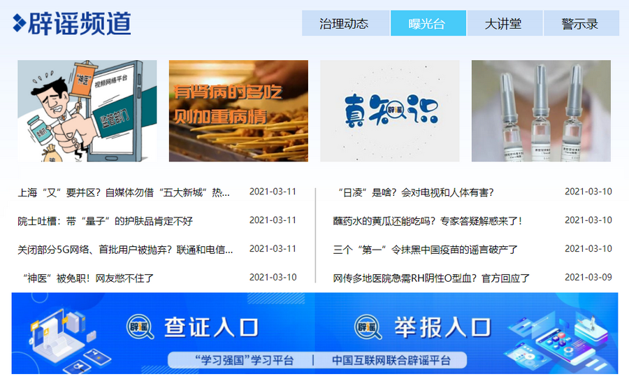 3月12日,中國互聯(lián)網(wǎng)聯(lián)合辟謠平臺與“學習強國”學習平臺共建的“辟謠平臺”頻道正式上線?!氨僦{平臺”將圍繞習近平總書記關于網(wǎng)絡綜合治理的重要論述,依托雙方內容、平臺優(yōu)勢,宣傳網(wǎng)絡安全、網(wǎng)絡空間治理政策法規(guī),為廣大讀者提供權威辟謠信息以及舉報查證服務,幫助讀者提高辨別謠言和虛假信息的能力,助力清朗網(wǎng)絡空間。