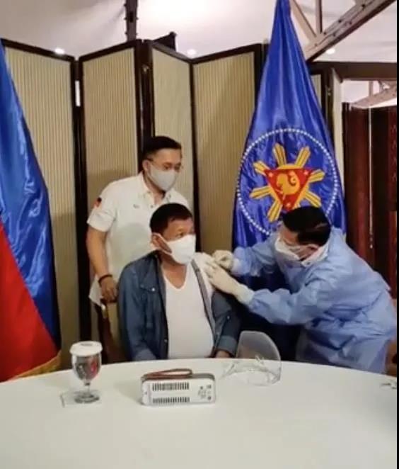 ▲杜特爾特3日晚接種中國疫苗。(視頻截圖)