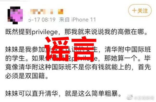 關(guān)于網(wǎng)絡(luò)上“清華附中國際班學(xué)生必須是雙重國籍,可以直升清華”的言論,清華大學(xué)附屬中學(xué)國際部19日回應(yīng),“這些都是無稽之談?!?/p>