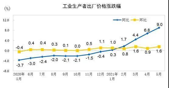 國家統(tǒng)計局?jǐn)?shù)據(jù)顯示,5月份CPI上漲1.3%,漲幅比上月擴大0.4個百分點;國際原油、鐵礦石、有色金屬等大宗商品價格大幅上漲,全國工業(yè)生產(chǎn)者出廠價格同比上漲9.0%,創(chuàng)出近13年新高。這也引起大家對于PPI漲幅向CPI傳導(dǎo)的擔(dān)憂。