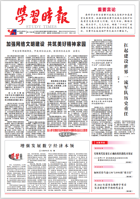 加強(qiáng)網(wǎng)絡(luò)文明建設(shè)是加快建設(shè)網(wǎng)絡(luò)強(qiáng)國(guó)、全面建設(shè)社會(huì)主義現(xiàn)代化國(guó)家的重要任務(wù)。習(xí)近平總書(shū)記指出:“實(shí)現(xiàn)中國(guó)夢(mèng),是物質(zhì)文明和精神文明均衡發(fā)展、相互促進(jìn)的結(jié)果。沒(méi)有文明的繼承和發(fā)展,沒(méi)有文化的弘揚(yáng)和繁榮,就沒(méi)有中國(guó)夢(mèng)的實(shí)現(xiàn)。”加快建設(shè)網(wǎng)絡(luò)強(qiáng)國(guó),既要有過(guò)硬的核心技術(shù)、發(fā)達(dá)的基礎(chǔ)設(shè)施、繁榮的數(shù)字經(jīng)濟(jì)、有力的安全保障,也要有豐富的網(wǎng)絡(luò)服務(wù)、優(yōu)質(zhì)的網(wǎng)絡(luò)內(nèi)容、健康的網(wǎng)絡(luò)文化、良好的網(wǎng)絡(luò)生態(tài)。這就要求我們必須胸懷兩個(gè)大局,把加強(qiáng)網(wǎng)絡(luò)文明建設(shè)作為推動(dòng)網(wǎng)信事業(yè)高質(zhì)量發(fā)展、建設(shè)網(wǎng)絡(luò)強(qiáng)國(guó)的重要內(nèi)容,充分發(fā)揮網(wǎng)絡(luò)文明在舉旗幟、聚民心、育新人、興文化、展形象等方面的積極作用,唱響主旋律、傳播正能量、弘揚(yáng)真善美,積極構(gòu)建網(wǎng)上網(wǎng)下同心圓,不斷鞏固全黨全國(guó)人民團(tuán)結(jié)奮斗的共同思想基礎(chǔ),更好凝聚全面建設(shè)社會(huì)主義現(xiàn)代化國(guó)家的磅礴力量。