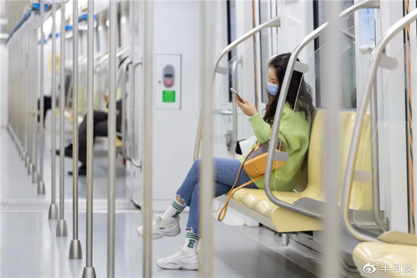 一位乘客在地鐵上瀏覽手機(jī) 張夢(mèng) 攝