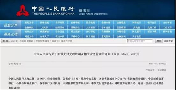 這一消息源自央行近期發(fā)布的條碼支付監(jiān)管新通知。2021年10月13日,央行官網(wǎng)發(fā)布《中國(guó)人民銀行關(guān)于加強(qiáng)支付受理終端及相關(guān)業(yè)務(wù)管理的通知》,對(duì)收單機(jī)構(gòu)和清算結(jié)構(gòu)提出了一系列的管理要求。與此同時(shí),條碼支付也被納入監(jiān)管,對(duì)個(gè)人收款條碼的使用規(guī)范做出具體規(guī)定,并將于2022年3月1日起施行。