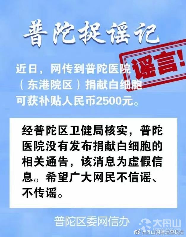 近日,網(wǎng)傳到普陀醫(yī)院 (東港院區(qū))捐獻(xiàn)白細(xì)胞可獲補(bǔ)貼人民幣2500元。