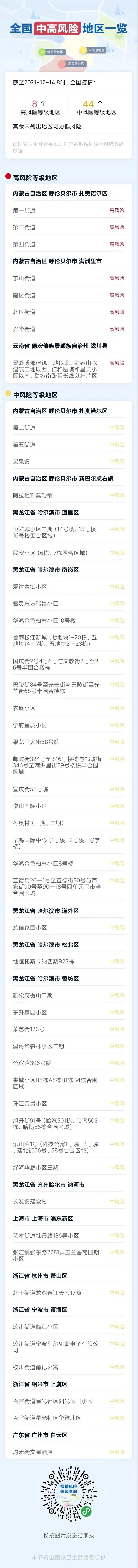 12月14日0至24時,當日我區(qū)無新增本土確診病例、無癥狀感染者、疑似病例?,F有本土無癥狀感染者1例。