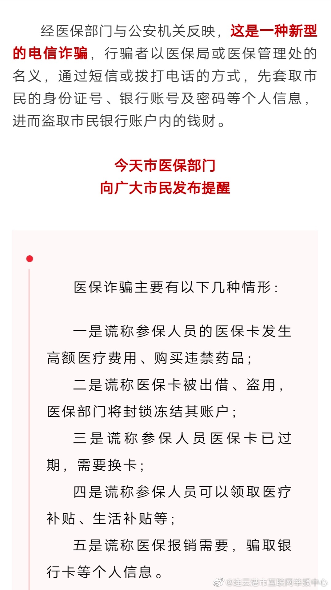經(jīng)醫(yī)保部門與公安機(jī)關(guān)反映,這是一種新型的電信詐騙,行騙者以醫(yī)保局或醫(yī)保管理處的名義,通過短信或撥打電話的方式,先套取市民的身份證號、銀行賬號及密碼等個人信息,進(jìn)而盜取市民銀行賬戶內(nèi)的錢財。