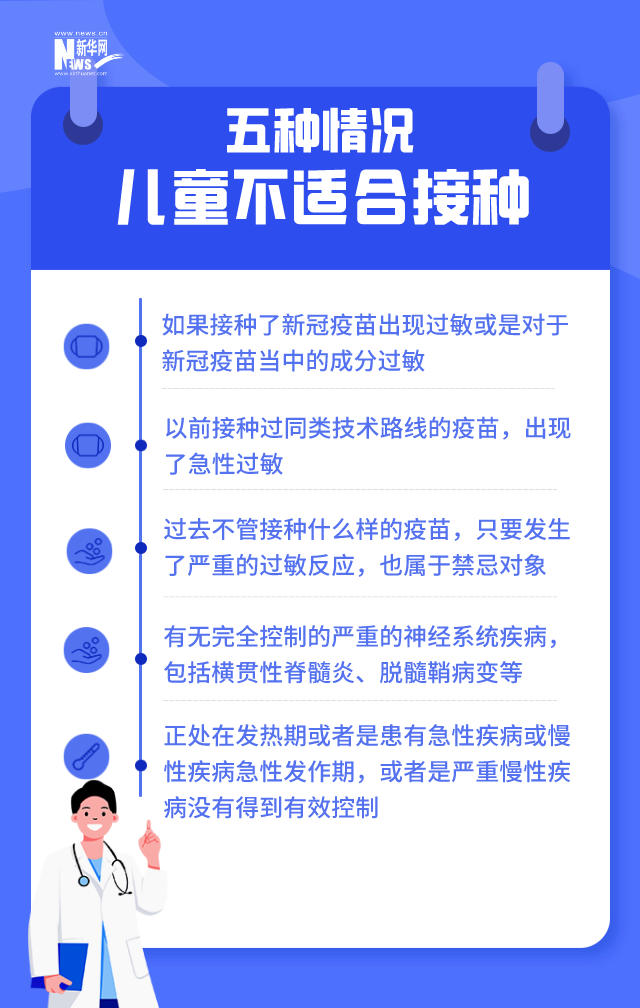 王華慶同時提示,根據(jù)已經(jīng)發(fā)布的新冠病毒疫苗接種技術(shù)指南,不適合接種新冠疫苗的兒童則不要接種。主要情況包括以下↓↓↓