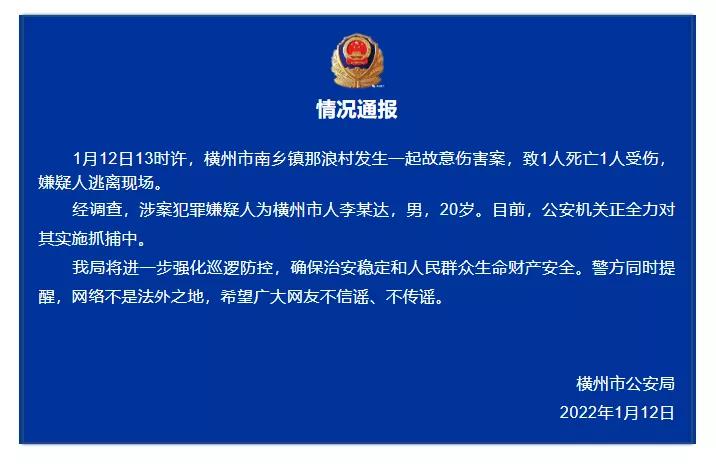 1月12日南寧橫州市南鄉(xiāng)鎮(zhèn)那浪村發(fā)生一起故意傷害案,致1人死亡1人受傷,嫌疑人逃離現(xiàn)場。經(jīng)調(diào)查,涉案犯罪嫌疑人為橫州市人李某達(dá),男,20歲。